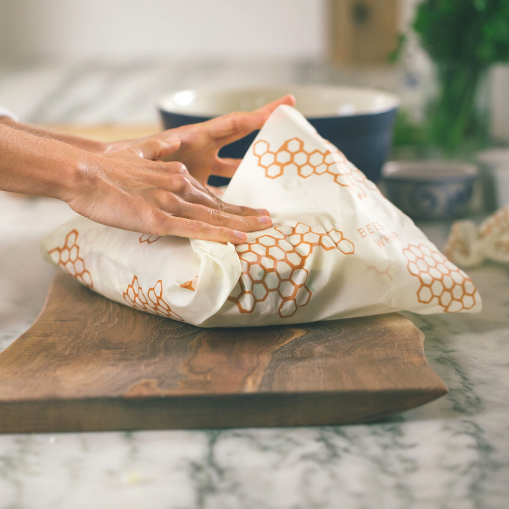Use the warmth of your hands to shape Bee's Wrap around food, creating a protective, breathable seal. Wrap fruits, veggies, cheese, and bread. Pack sandwiches and snacks on the go. Cover and store leftovers - all without plastic!