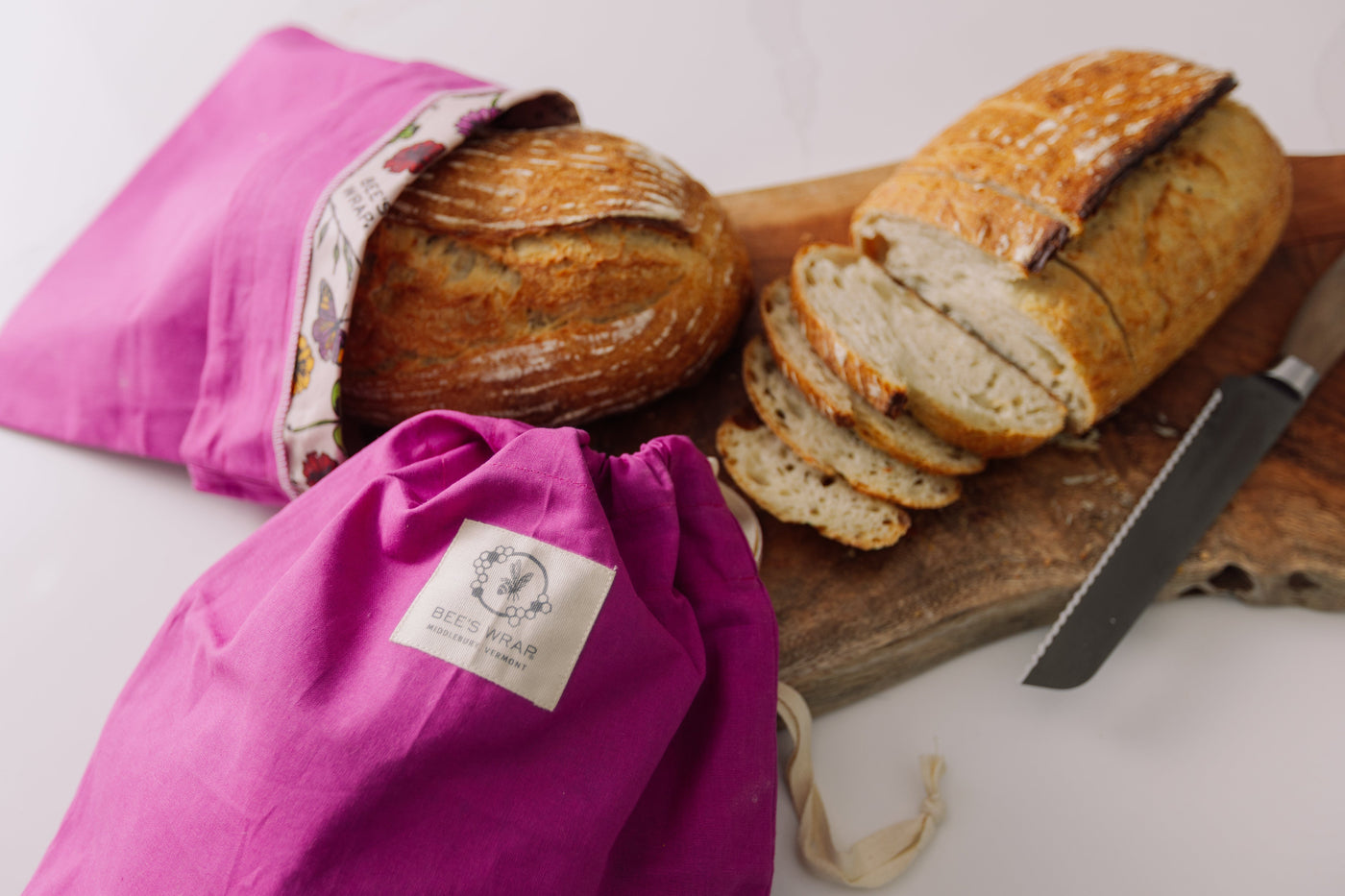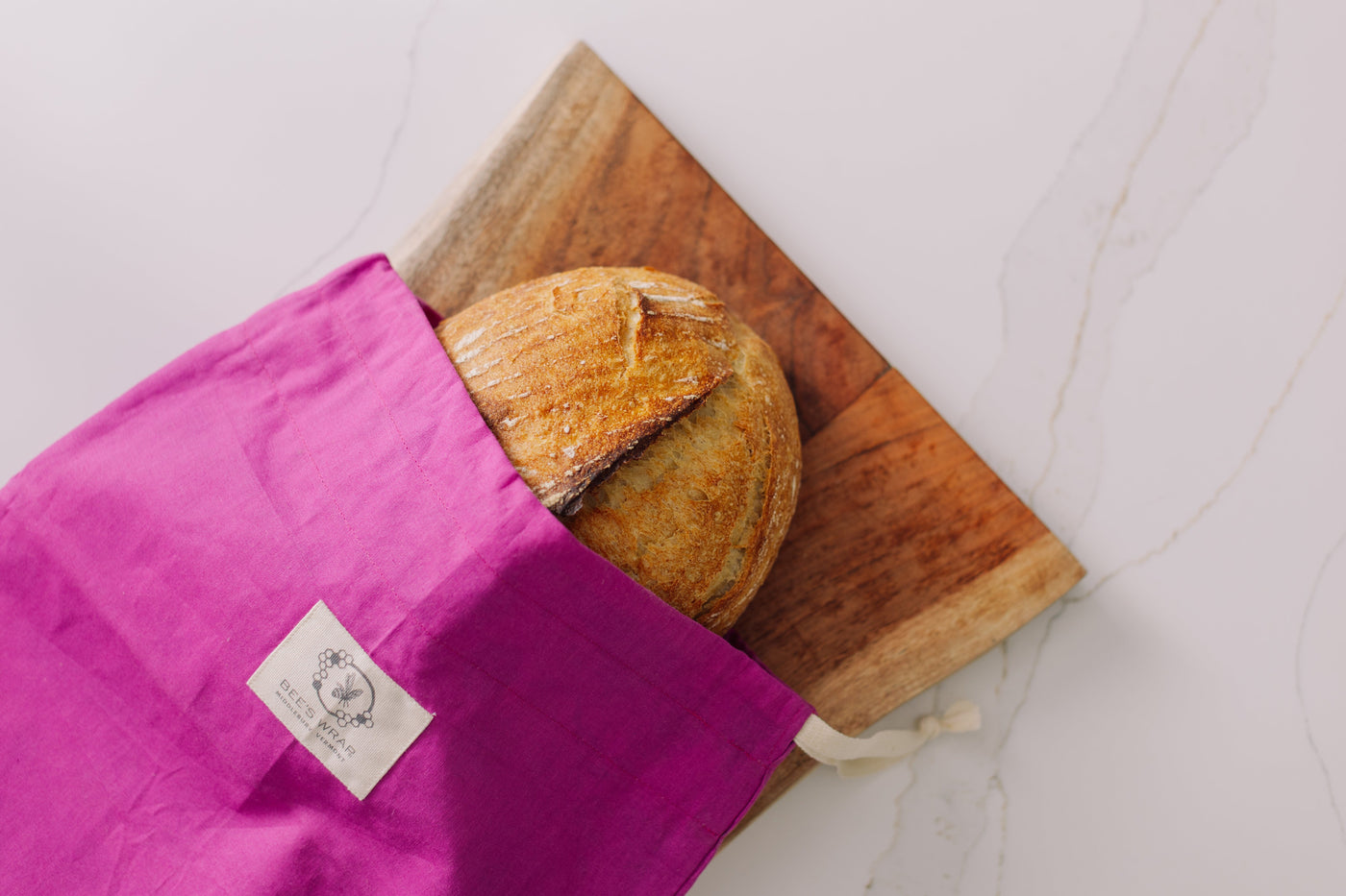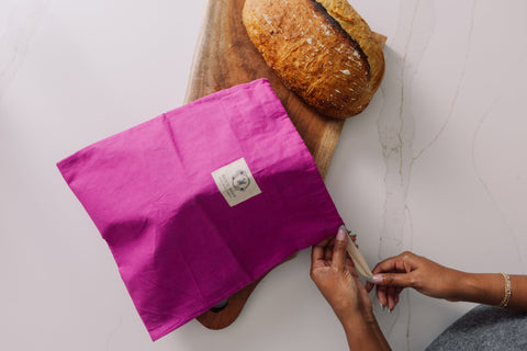 To wash, turn inside out and rinse in cool water. Allow your bread bag to dry, and reuse again and again!